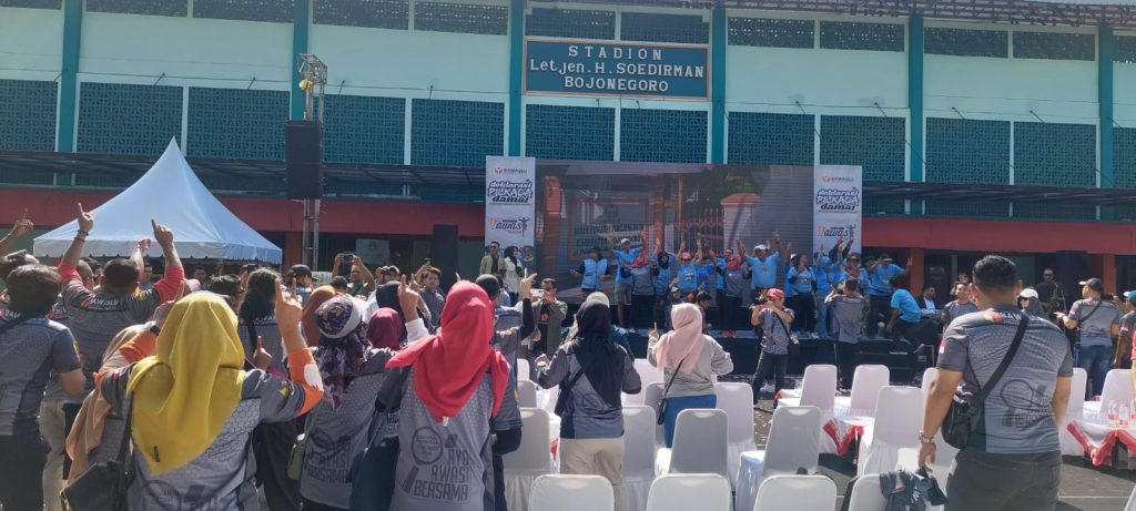Kegiatan tersebut diprakarsai oleh Badan Pengawas Pemilihan Umum (Bawaslu) Kabupaten Bojonegoro, Jawa Timur. Mereka sengaja melaksanakannya di halaman Stadion Letjen H. Soedirman sebagai simbol adanya demokrasi sehat dengan mengusung tagline “Menang Bermartabat, Kalah Terhormat”.